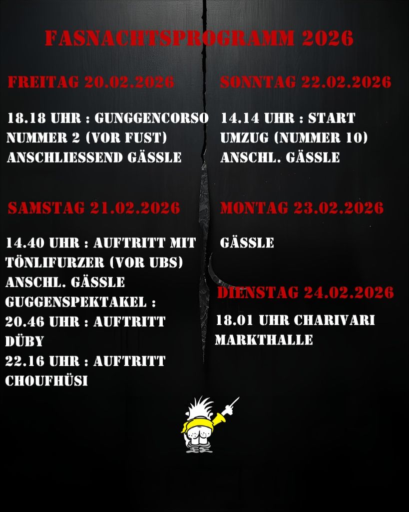 • 22.16h – Auftritt Guggenspektakel, Choufhüsi Bühne