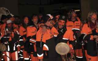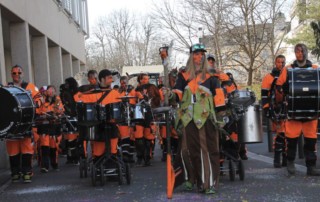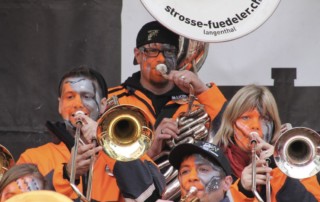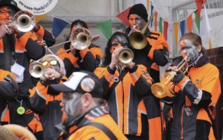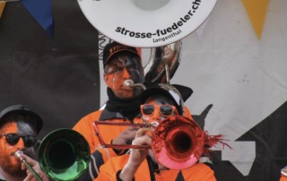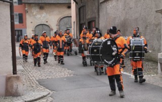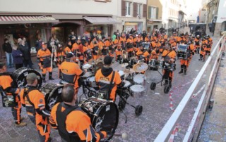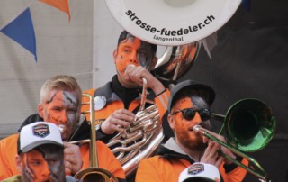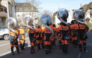 Sonntag morgen. Wir erhalten das etwas überraschende Angebot auf den schnellen, grossen Umzug zu verzichten. Alternative ist die Unterhaltung der anwesenden Besucher, welche auf den in Deutschland gestarteten Umzug warten. Für uns eine tolle Lösung und wir haben die Umzugsstrecke für uns alleine während die weiteren Guggen nach Deutschland marschieren um anschliessend im raschen Schritt wieder in die Schweiz zurückzukehren. Mit verschiedenen Platzkonzerten unterhalten wir die Zuschauer bevor wir den Umzug geniessen. Getrieben von einem Feuerwehrfahrzeug endet der Umzug nach über 60 Nummern. Unser letztes Platzkonzert mit „STIHL“ folgt im Abschluss.